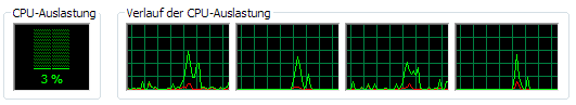 Also ein Kern ist definitiv zu wenig. Und zwei Kerne kommen gelegentlich auch mal an ihre Grenzen. Ich sitzt gerade vor meinem 2006er Dell Laptop mit 2 x 1.66 GHz und mit zwölf Tabs in Chrome offen und im Hintergrund laufen noch eine Ordner, Exel 2010 und der Taschenrechner von Windows. Wenn ich jetzt eine Zeit lang den Taskmanager beobachte, dann schwanke beide Kerne sehr gleichmäßig zwischen 6 und 24 Prozent. Einmal zu Chrome und nen Tab wechseln und ich bin auf beiden Kernen bei 65%. 2-3 ältere Tabs geöffnet die nachladen müssen und beide Kerne bilden bei 100% eine Linie.