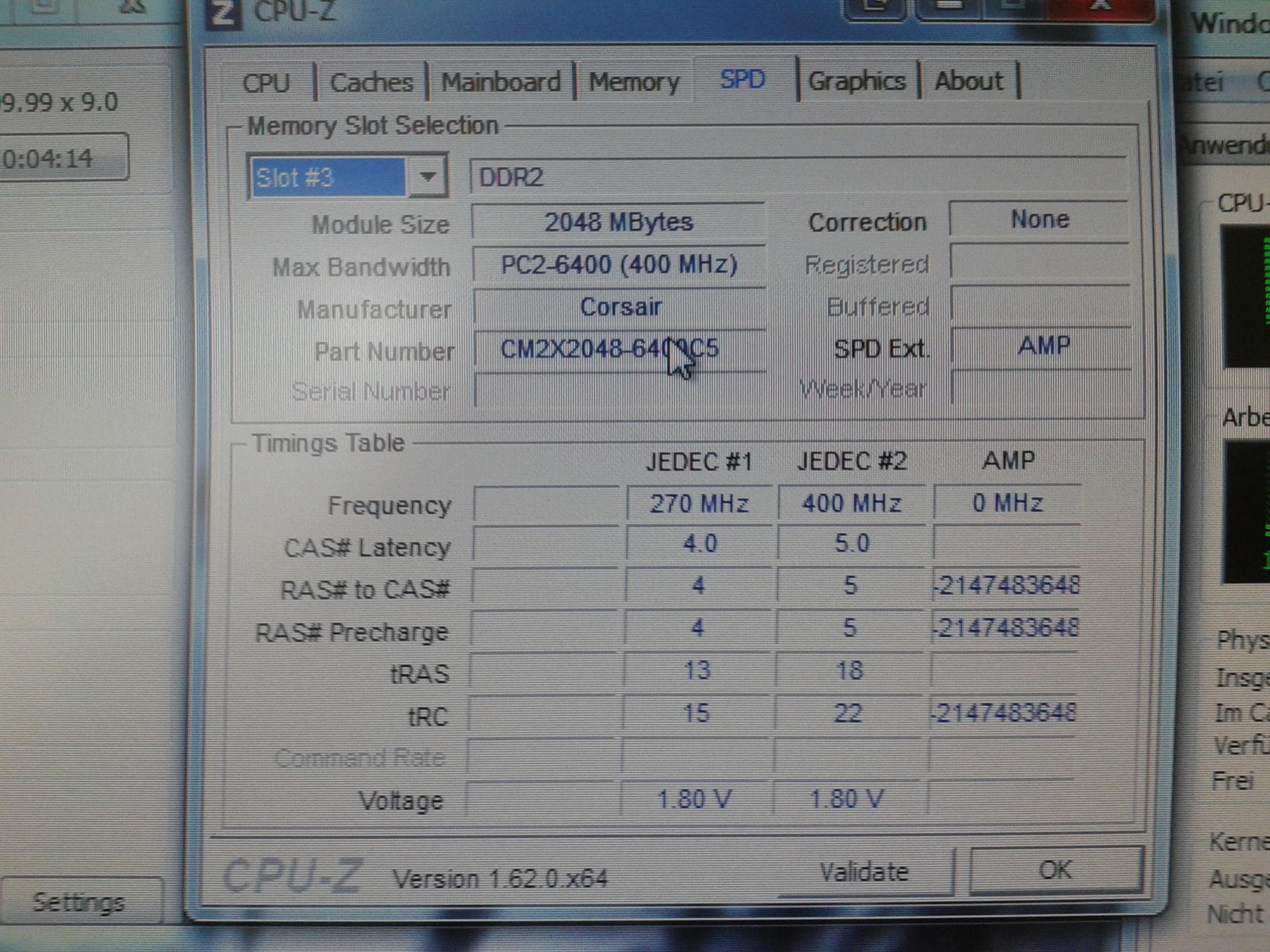 2 * 2GB Corsair CMX2048-6400C5C 1,8V (800Mhz, 2048MB, 5-5-5-18)