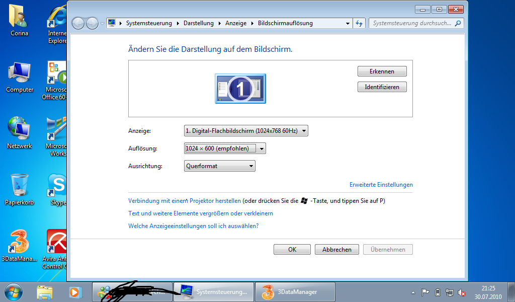 Die höchste einstellbare Auflösung liegt bei 1024x600 - der Bildschirm sollte aber eigentlich 1024x768 darstellen können.