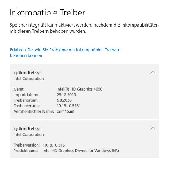 Leider habe ich Probleme mit inkompatiblen Treiber der Intel HD 4000 ( siehe Anhang )