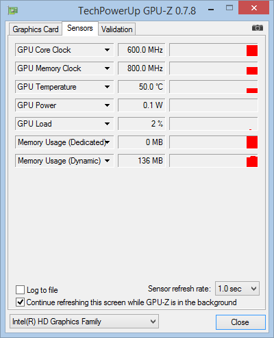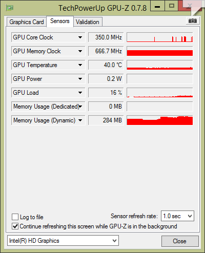 Eigentlich takten sich die Intel HD Grafikkarten auch runter auf 350 deine hat ja 600 Mhz GPU Core Clock. Möglich das es daran liegt.