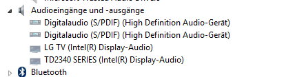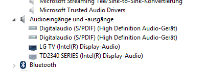 Wird es aber nicht mehr... Sobald ich auf "Display clonen / erweitern" gehe, habe ich kein Audio-Wiedergabegerät mehr. Wechsle ich auf "LG 3D TV" oder "TD2340", habe ich sofort wieder das dementsprechende Audio-Wiedergabegerät.