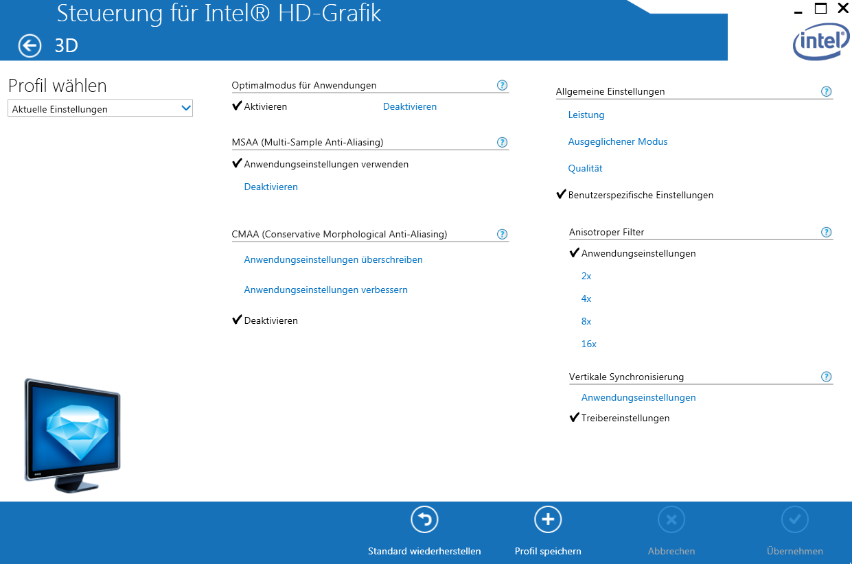 Habe schon gegoogelt aber nichts gefunden, das Bild auf der Intel Seite sieht anders aus, wie kann ich mit dem neusten Intel Treiber VSync forcieren =?