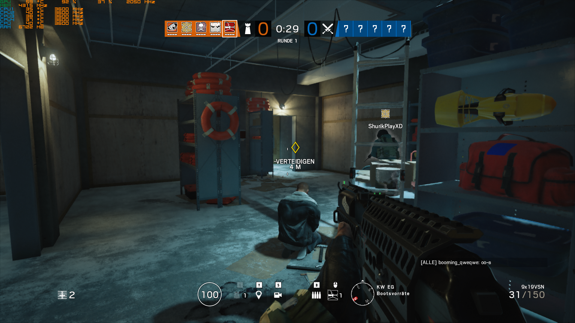 Gleich funktioniert das auch mit der GPU, wenn es ruckelt und es stehen dort nahe 100, dann bist du im GPU Limit.