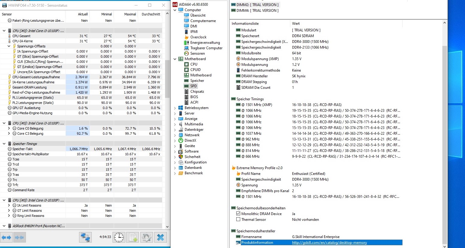 RAM siehe Foto, dazu wie gesagt der i3 10100F und das ASROCK B460M PRO Board.
