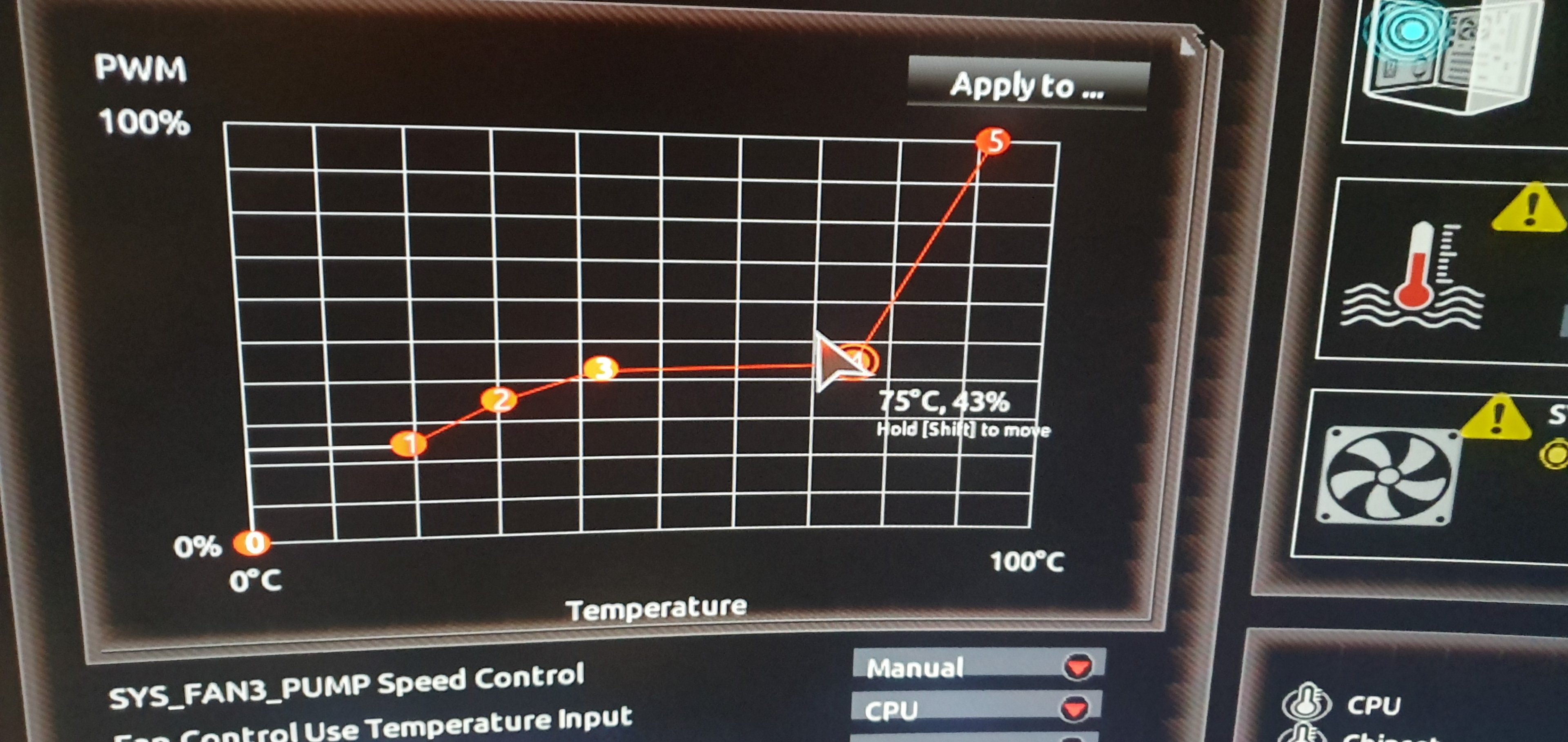Sehe ich das richtig, dass Dein CPU-Lüfter so eingestellt ist, dass er ab 60°C auf 100% springt? Daran ist nichts richtig eingestellt.S4lty Trapper schrieb:Soo hier mal bilder.