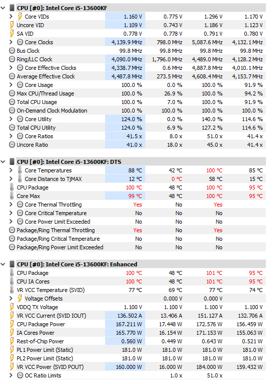 Nun habe ich mal CR23 und auch Prime laufen lassen. Ich war komplett schockiert von dem Temps. Die CPU geht auf die 100 Grad und drosselt sich. Mir erscheint die Spannung auch zu hoch. Ich habe mal Screens vom Bios und von dem Temps angehangen. Ich hatte am ersten Tag der Inbetriebnahme Temps von max 72 Grad. Wie kommen plötzlich diese Hohen Temps zu stande?