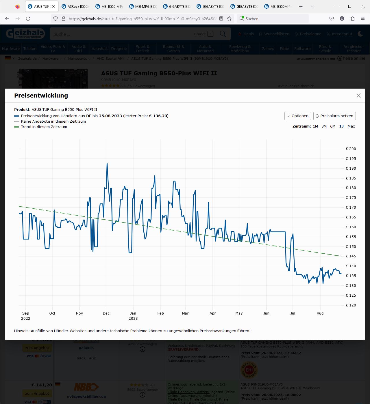 Spar dir bitte weitere Links von vereinzelten in der Zeit und Stückzahl begrenzenden Angeboten aus der Vergangenheit. Die sind leider nicht zielführend und helfen dem TE auch nicht weiter. Der allgemeine Preistrend ist meinen Screenshots in 33 zu entnehmen, der für eine AM4 Plattform nur eine Richtung kennt.
