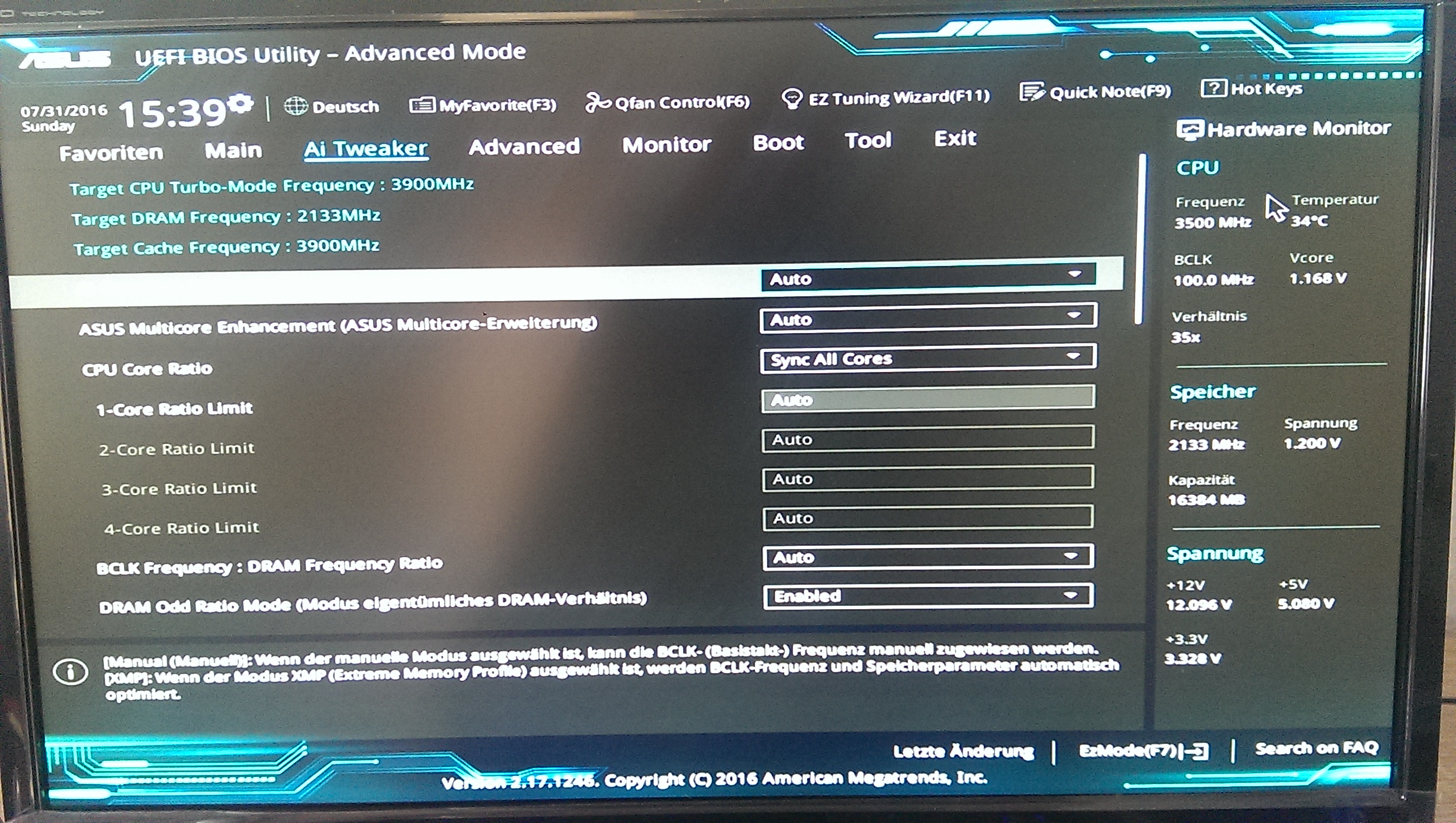 Bei mir läuft das ASUS UEFI BIOS Version 2.17.1246. Diverse Versuche die Konfigurationen im BIOS, die mit dem Chipsatz zu tun haben, zu ändern, brachten keinen Erfolg.
