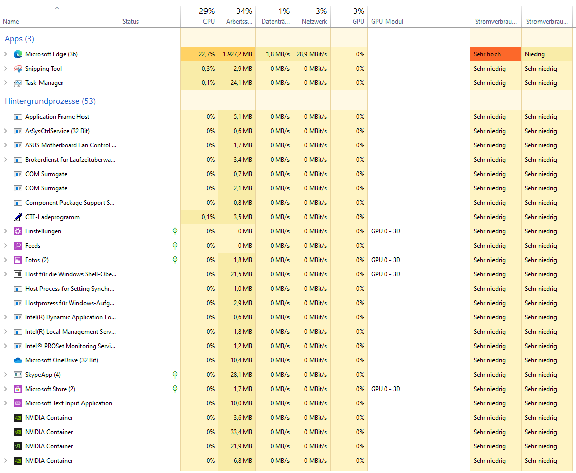 Hier alle screenshots, das ist mit edge offen ohne video an etc