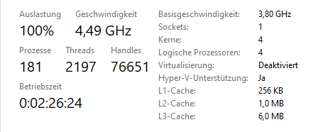 Auch im Taskmanager gucken, wenn die Auslastung der CPU auf 100% gehen sollte, dann wäre es wichtig zu wissen, ob das das Spiel selbst ist oder was anderes.