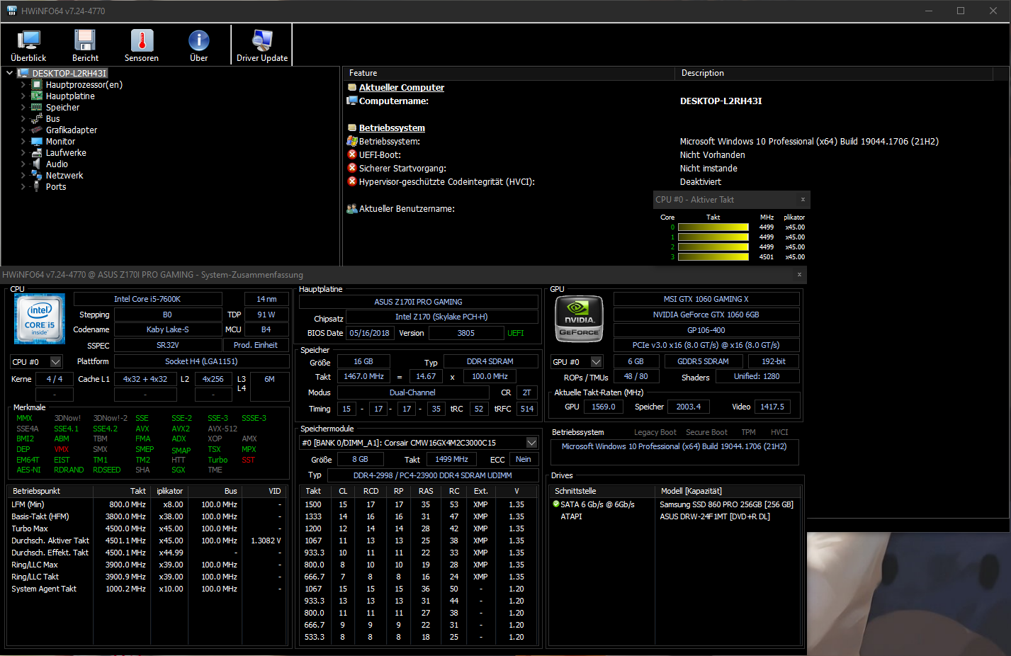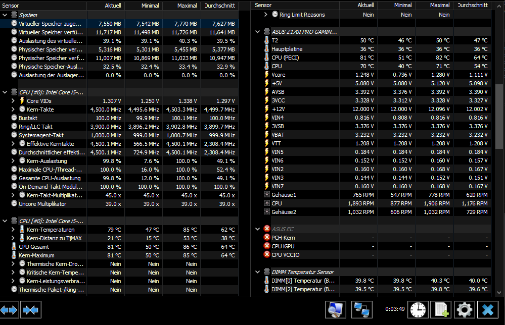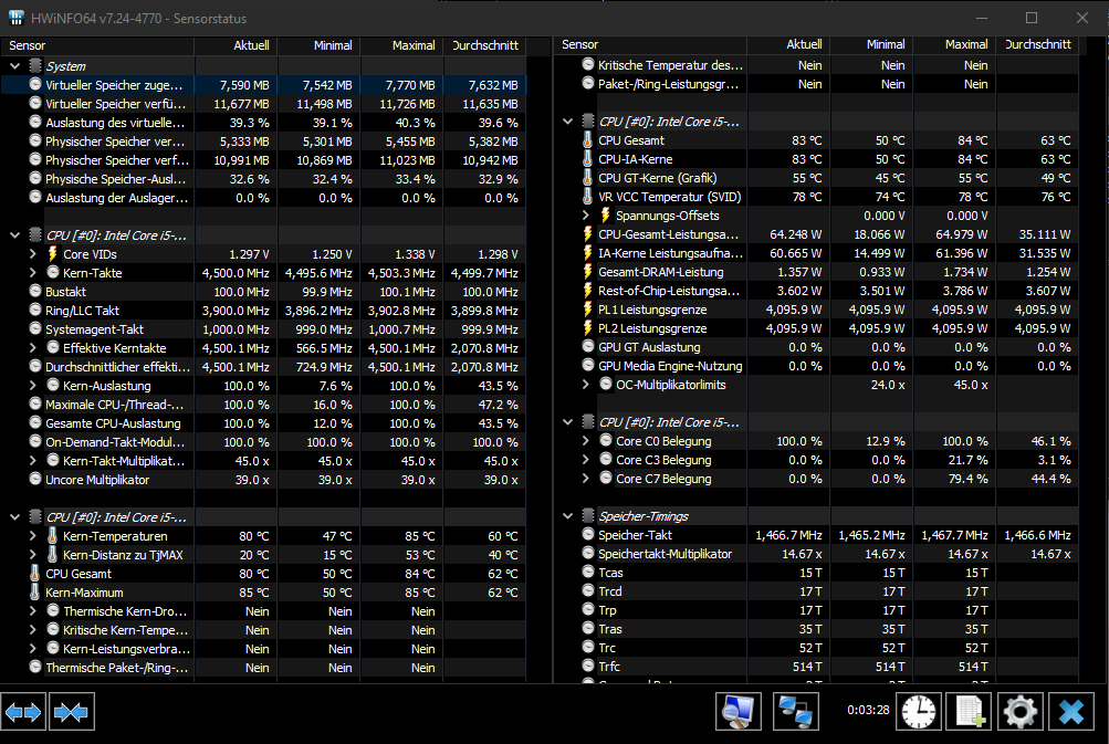 Mich wundern die dauerhaft anliegenden 4500 MHz.