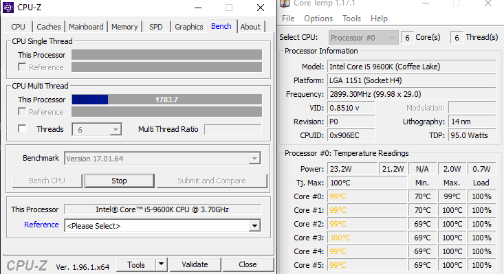 Die CPU überhitzt bei zunehmender Auslastung sehr stark bis es 100°C erreicht. Die durchschnittlichen Temperaturen(Beim browsen...) bei 3ghz sind anfangs nach dem hochfahren 75°, gehen dann aber hoch auf bis zu 80°. Ich habe schon Kühlwasser ausgewechselt, neue Wärmeleitpaste aufgetragen... meine WAKÜ sollte für die CPU locker ausreichen.