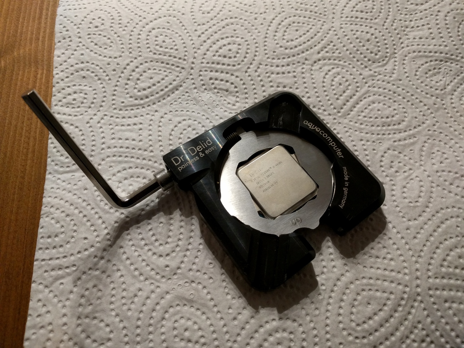Mein Freund mit dem 7700K hat uns mit seinem 3D-Drucker ein Delid-Tool gedruckt:
