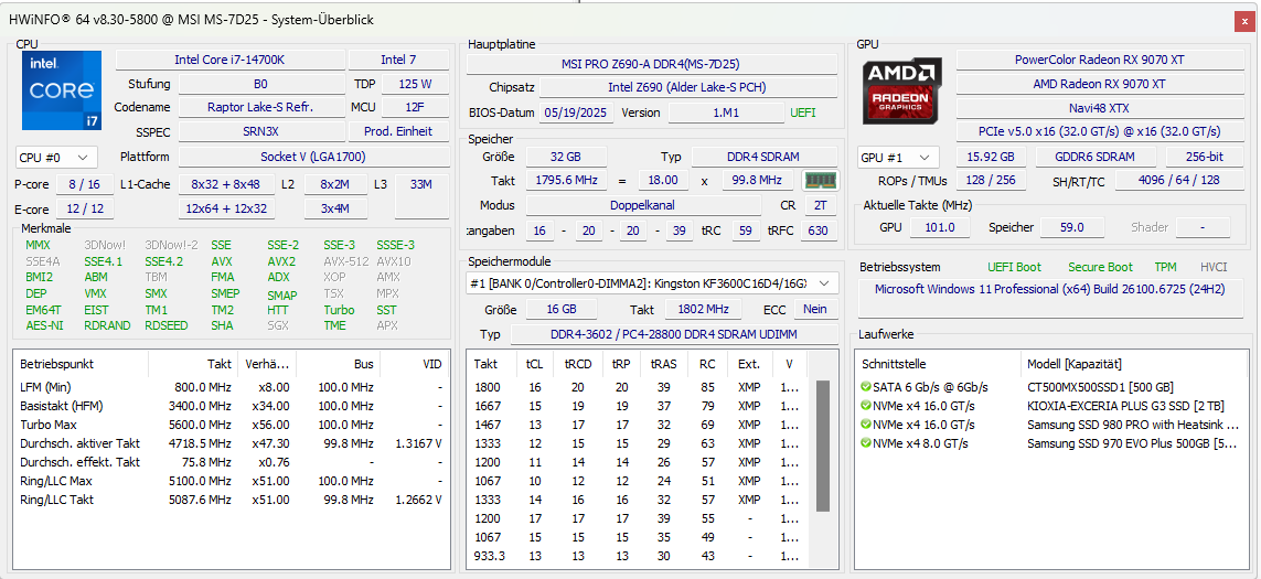 - Grafikkarte: … MSI RTX 5070TI Ventus 3X OC