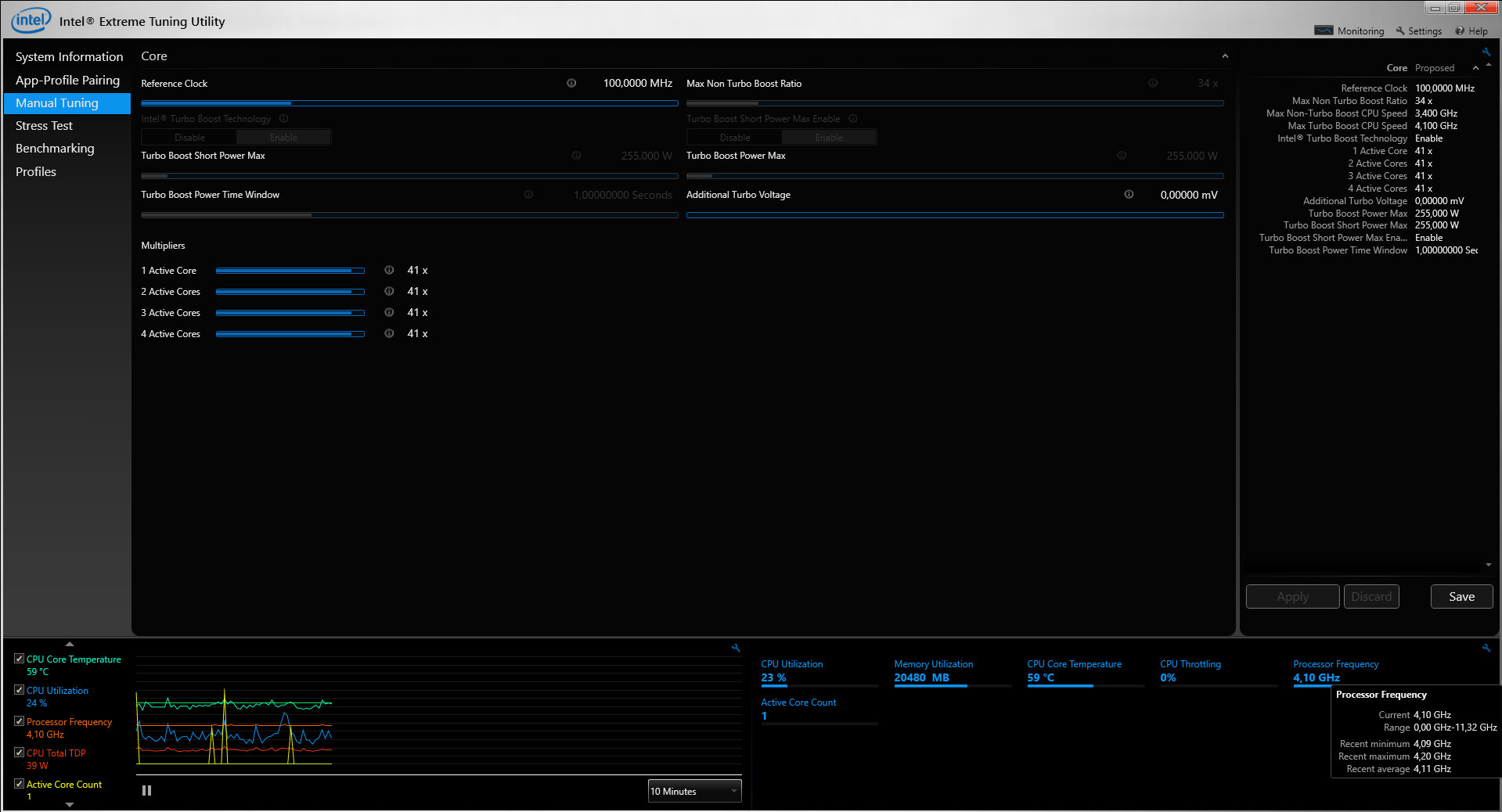 3400 MHz (34.00x100.0) @ 4100 MHz (41.00x100.0)