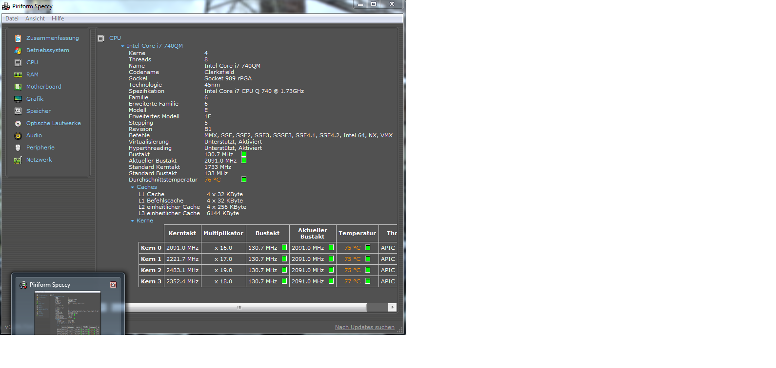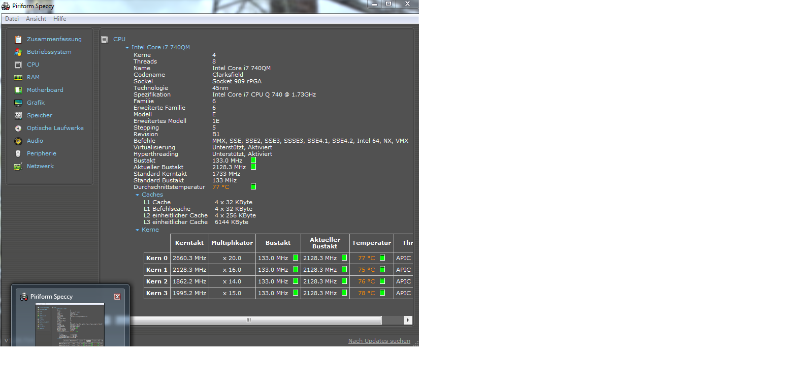 (Vier echte Kerne, Turbo Boost, Hyper-Threading, Grundtakt 1.73 GHz, Bis zu 2.93GHz)