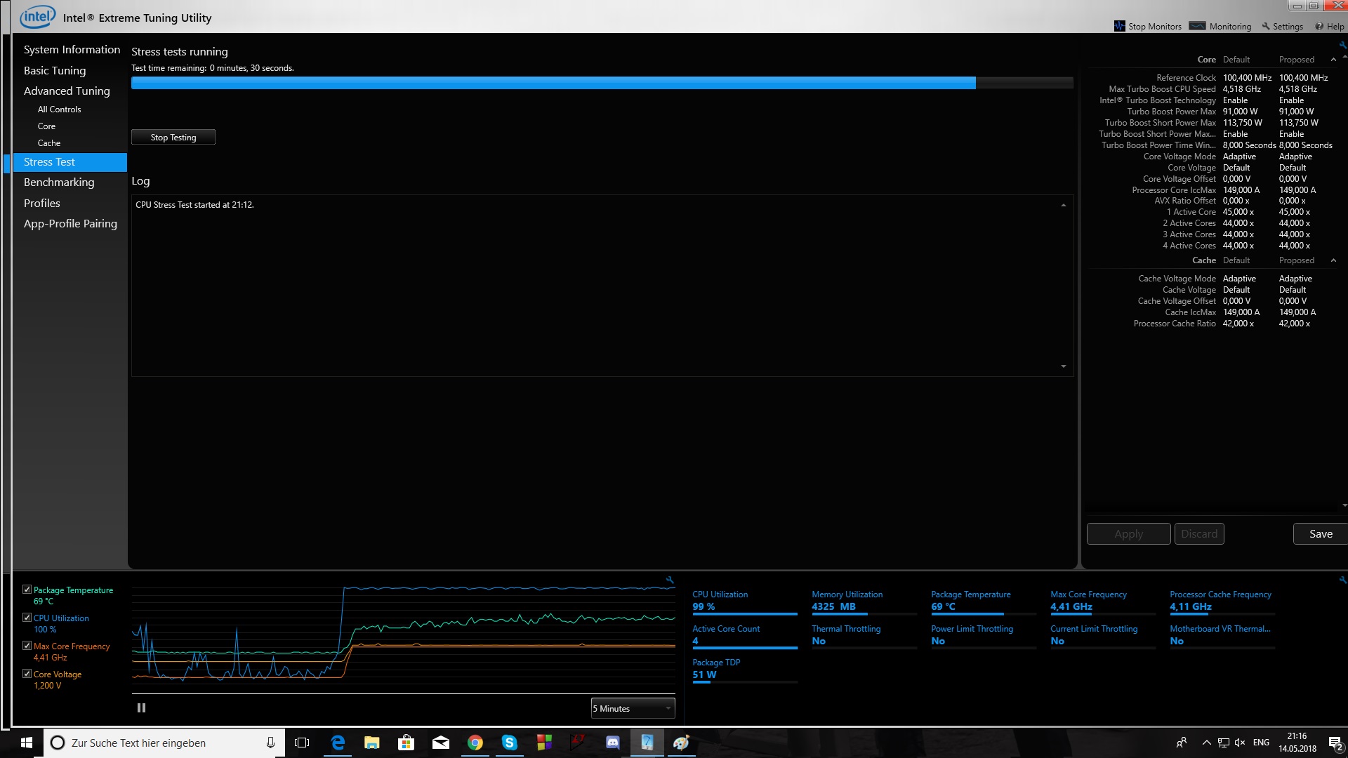 Ich vermute dass es um Motherboard geht. Ich höre manchmal "Klicks" , als würde sich aufgrund von Erwärmung etwas ausdehnen. Aber AI Suite II zeigt dass Temperatur Mainboard nur 23-26 % ist und Intel Programm zeigt Processortemperatur ist 30%. Wenn ich Stresstest ausführe , Processortemperatur uberschreitet nicht 70-80%