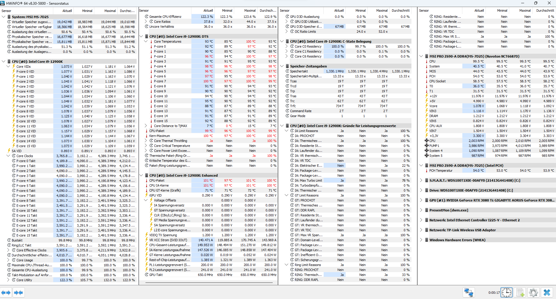 Meine Tochter hat von mir einen 12900K Prozessor mit einem be quiet! Dark Rock Pro 4 Kühler verbaut bekommen. Dieser Kühler ist für 250 Watt ausgelegt. In Cinebench R23 hat der Prozessor ohne Limits 256 Watt erreicht und um die 95 °C.