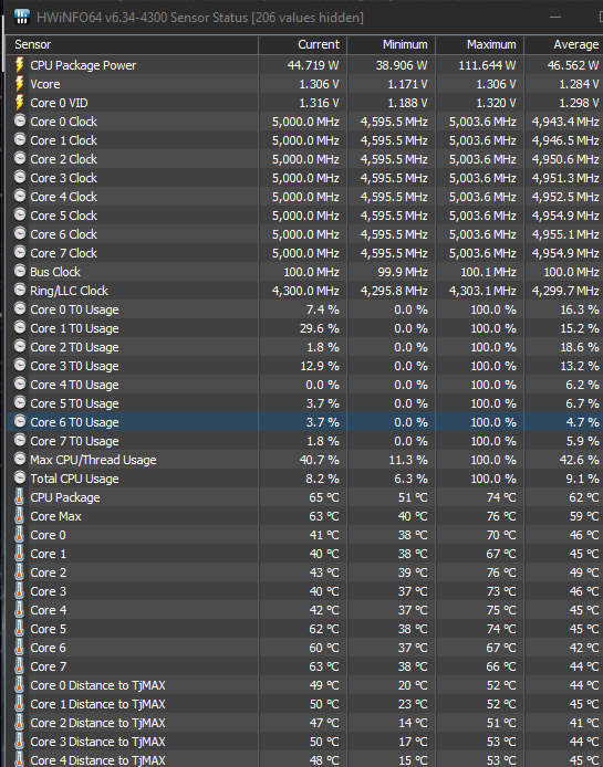 Bei Volllast bei Cinebench 21 geht er auf 4,6 ghz und droppt auf VCore 1,17 VCore bei 140 Watt.