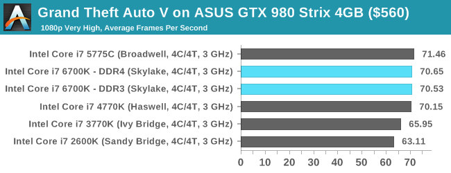 die gute Sandy feiert heute übrigens ihren 6. Geburtstag, Happy Birthday!). Das ist in GTA V mit sehr hohen Einstellungen und einer GTX 980 der Fall. Also in einem realistischen Anwendungsszenario und nicht in irgendwelchen theoretischen Benchmarks in 720p. Das ist bei den Tests auf der Seite übrigens der Optimalfall, bei den anderen Spielen ist der Unterschied geringer, was natürlich teils auch einem GPU-Limit geschuldet ist.