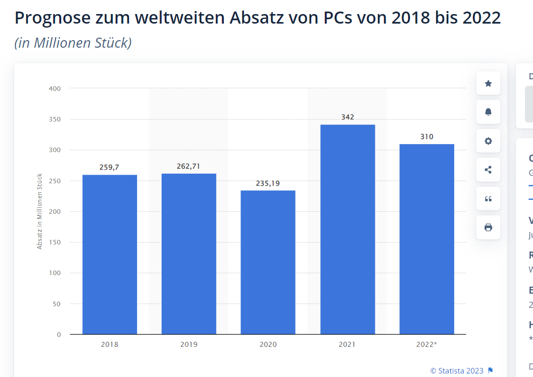 Dass der PC Markt sehr viel abgesetzt hat in den vergangenen Jahren wie aus der Statistik hervorgeht, lässt du wohl auch aus. Auch verwechselst du hier die (vorübergehende) Saturiertheit eines Marktes mit "Marktverschwinden" mitsamt einer Menge anderer Faktoren, die allesamt von den Analysten aufgeführt werden wie - weiterhin gestörte Lieferketten und Lockdowns, die besagte Marktsaturierung, eine große Rolle spielt auch die Inflation. Die privaten Kunden sind erstmal durch die hohe Anzahl der Käufe in vergangenen Jahren bedient, durch die Inflation bedingt wollen private Kunden erst ihre vorhandene Hardware nutzen usw.