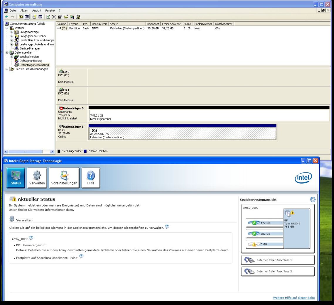 Datenträgerverwaltung keine Raid HDDS sichtbar ...