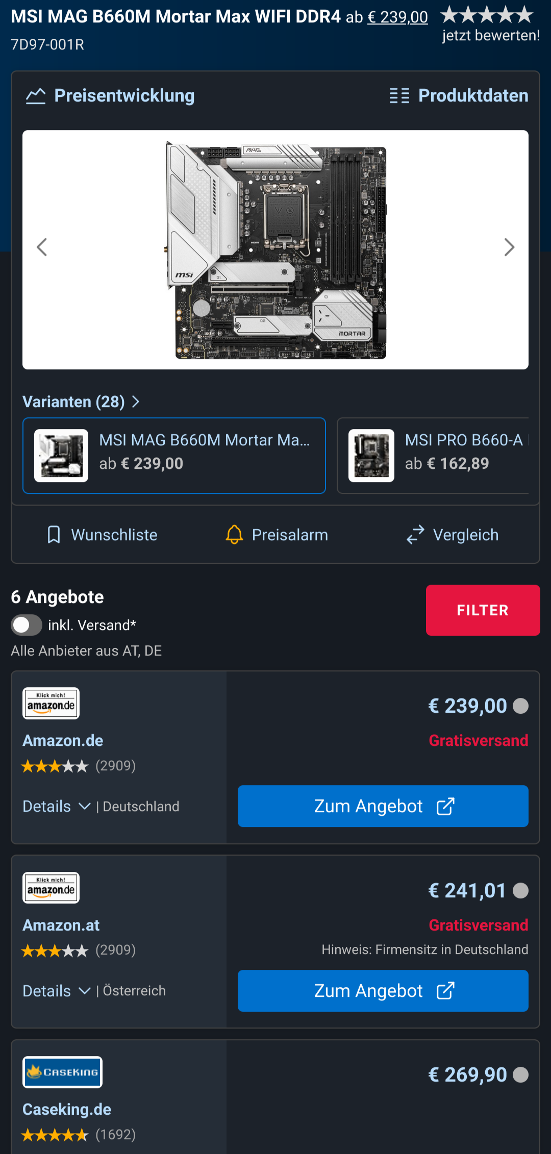 Nachdem MSI das Mortar Mag b660 bereits vor Monaten in Aussicht gestellt hatte, ist es nun bei einigen online Händlern gelistet: