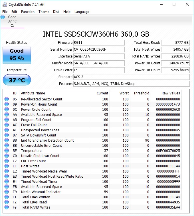 HDD: Intel SSD535 mit 360GB