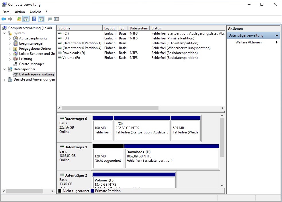 dann habe ich mal in die datenträgerverwaltung geschaut aber ich habe ausreichend platzt
