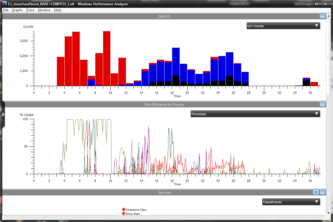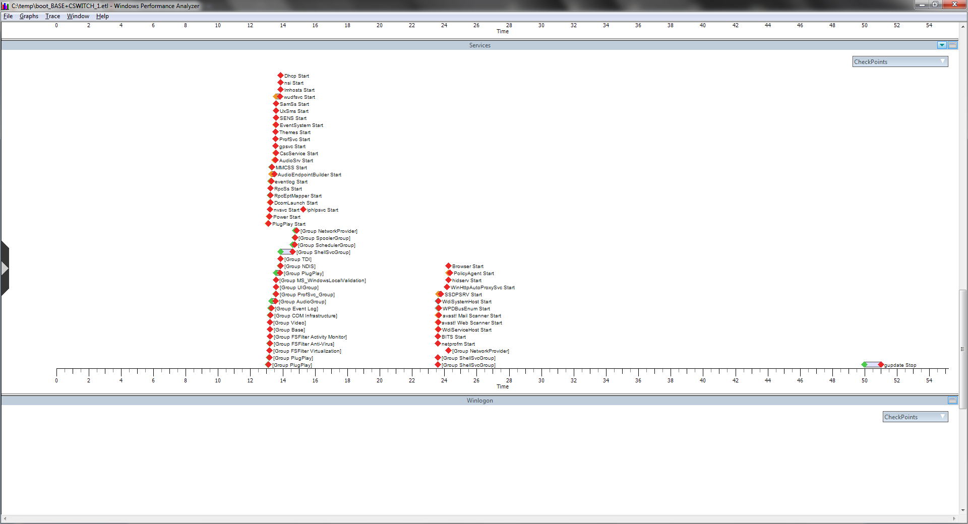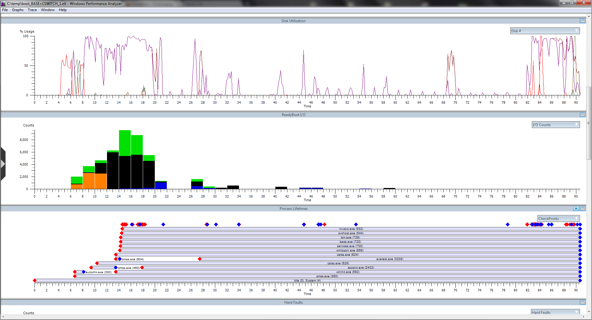 Ich nehme mal an, dass du den Trace zeitnah gestoppt hast und dein Bootvorgang wirklich so lange dauert. Falls dem so ist, sieht man eine große Leere bei den Diensten bzw. eine lange Phase, wo gar nichts passiert oder geladen wird.