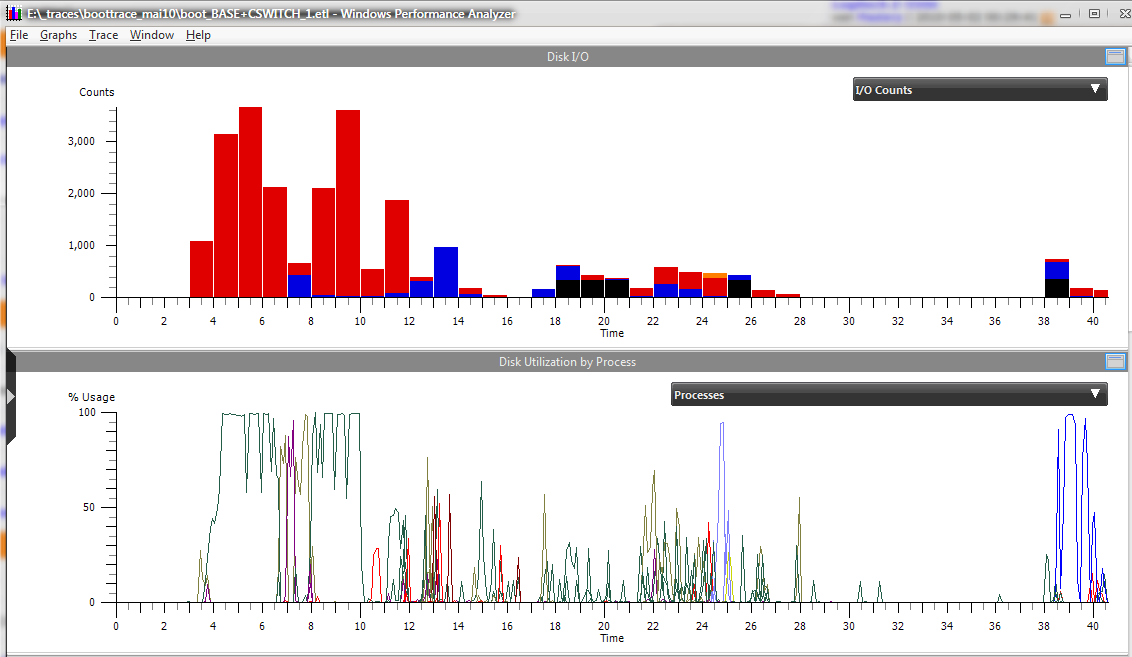 Unglaublich. Über 10'000 Write I/Os nach dem boot. Fragt mich nicht was das soll - das Media Center ist eigtl. sogar im Autostart deaktiviert. Der zweite Screenshot zeigt den Trace nach der Deinstallation dieses Wurms. Autostartprogramme sind nun wie gewohnt (bzw. ich scheine mich an's langsamere Starten gewöhnt zu haben - d.h. "ungewohnt" für mich grade) nach wenigen Sekunden offen.