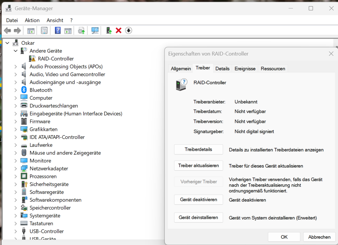 ... versucht einen treiber zu finden... aber ich will kei raid haben ?