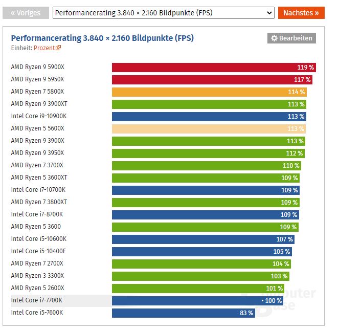 In 4K liegt ein 5900X nicht mal 20% vor dem 7700k.