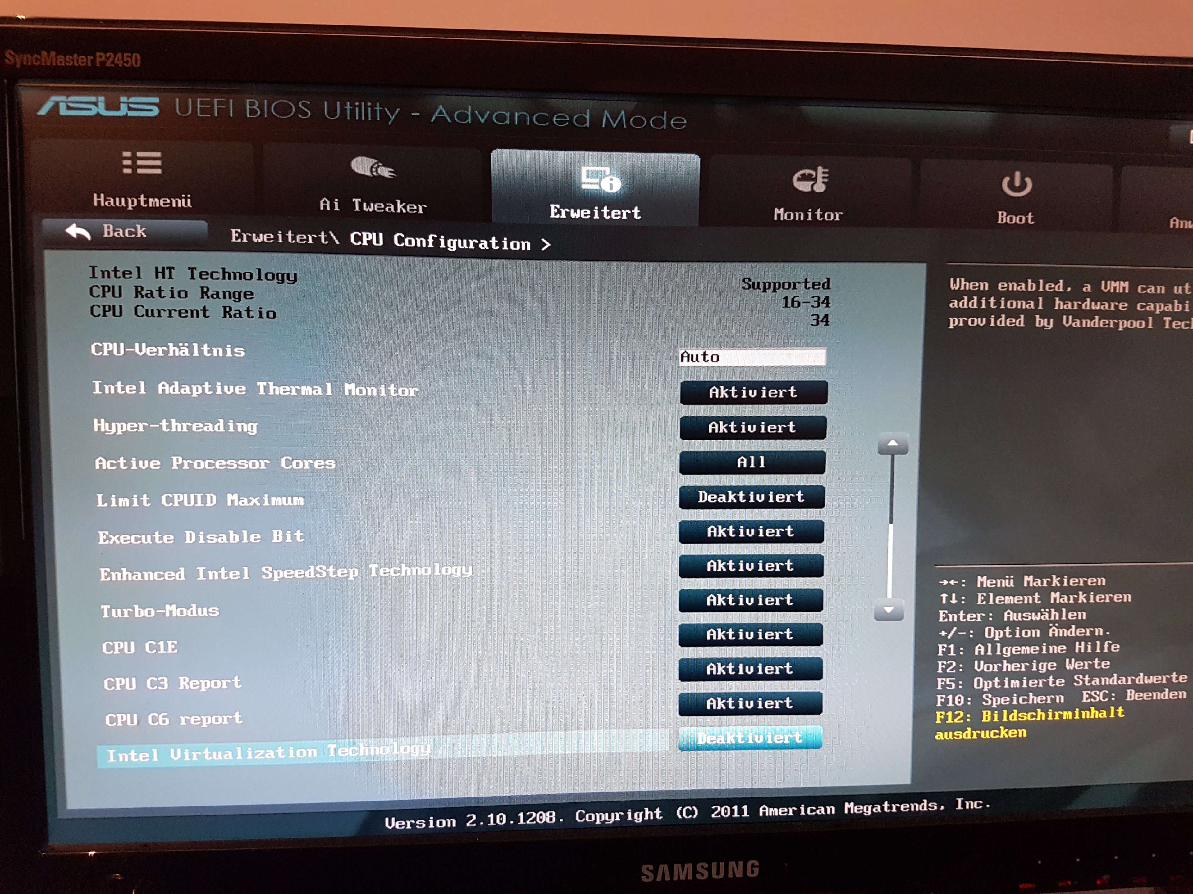- Folgende Einstellungen aktiviert: Eist, C1E, Package C state
