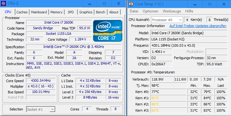 Ein i7(edit)-2600K verträgt meines Wissens höhere Temperaturen ohne in kritische Bereiche zu bekommen, das sollten bitte die Sandy Bridge Besitzer genauer beantworten.