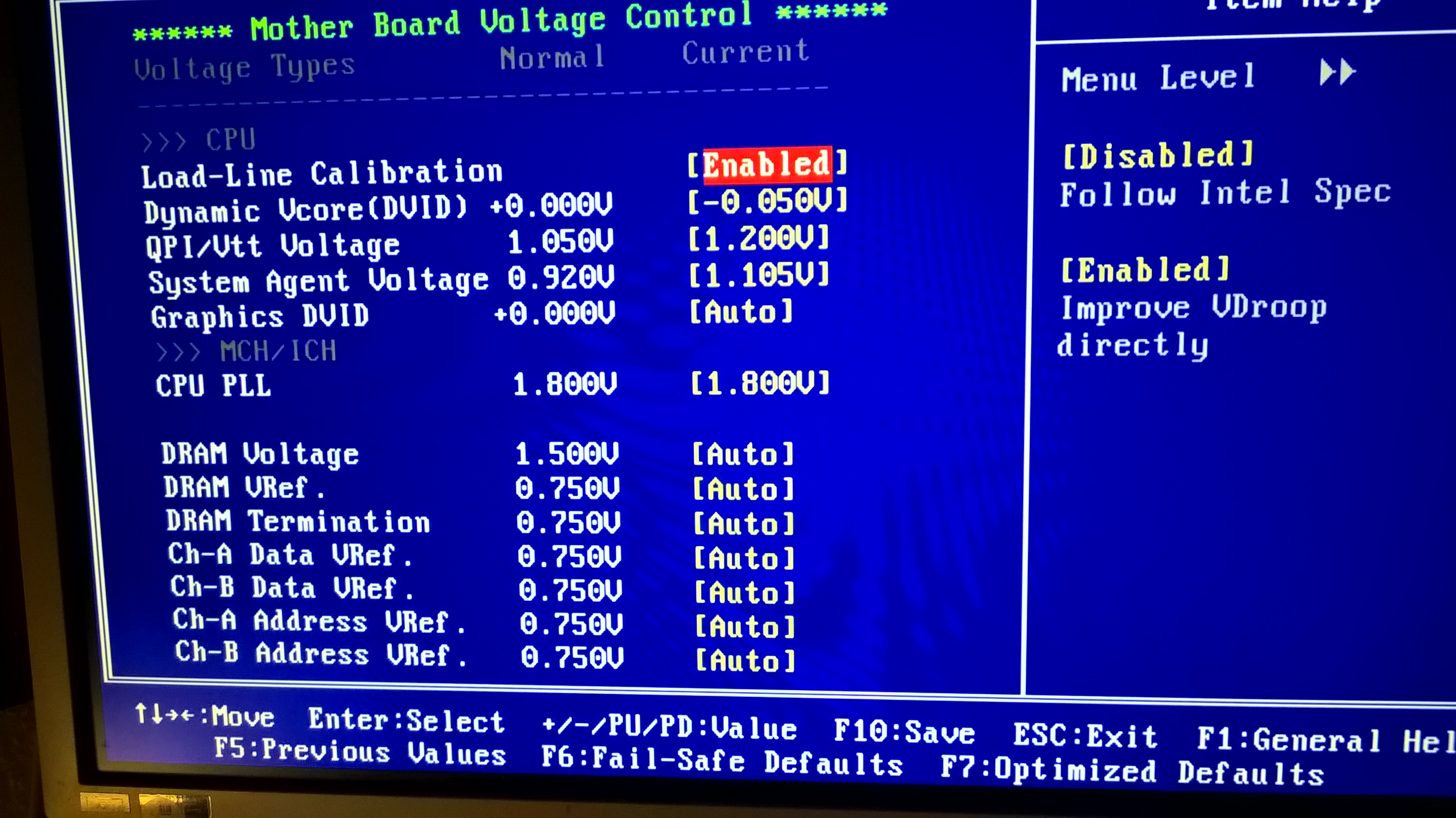 QPI/VTT muss nur auf 1,2 Volt, wenn du xmp Ram verwendest, bei normalem 1333er oder 1600er kann das auf 1.050 volt.