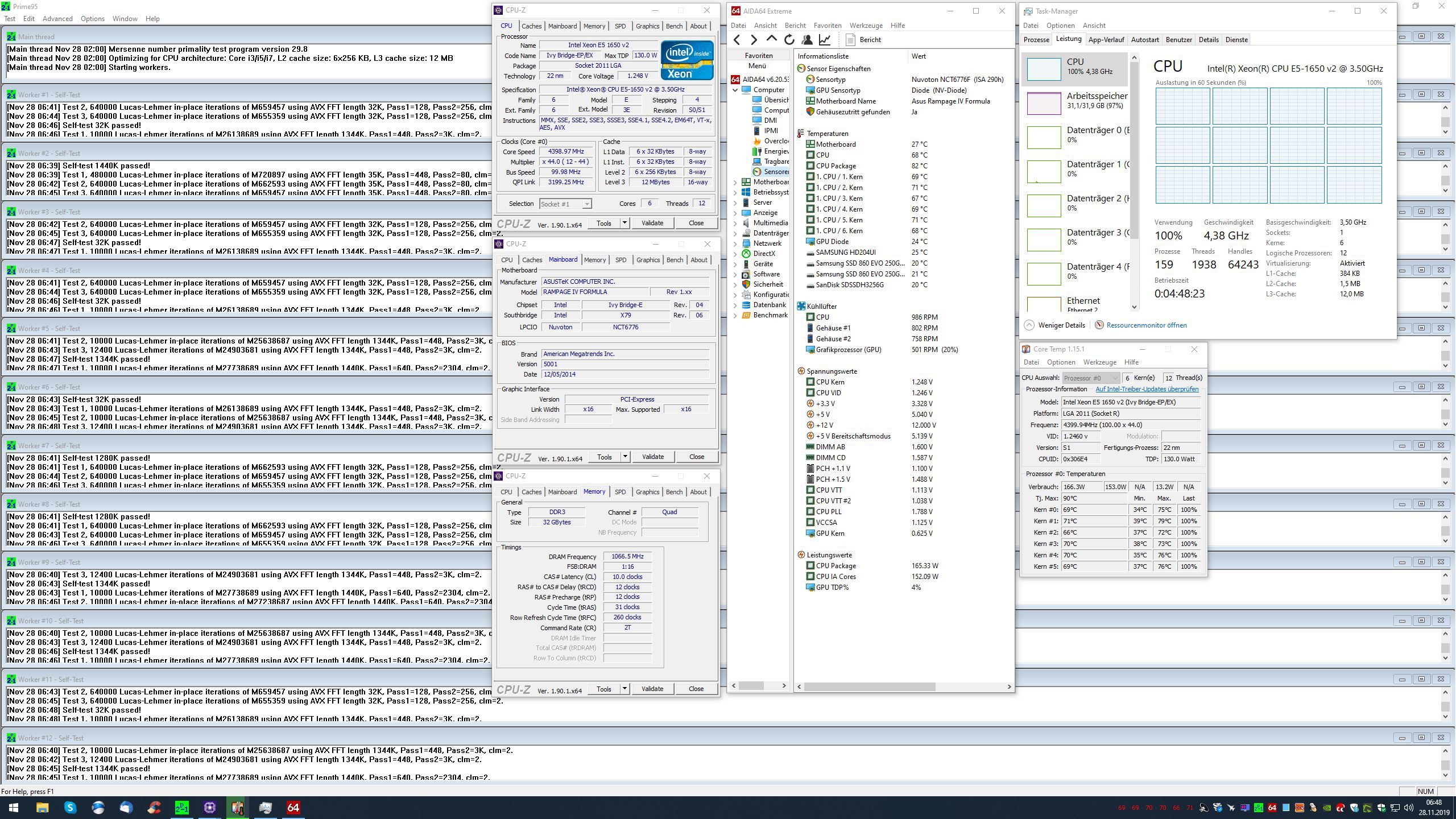 Anbei habe ich noch ein paar Bilder von meinem BIOS und von meinem gerade mal ein paar Sekunden laufenden Prime95 Test am hochgeladen.