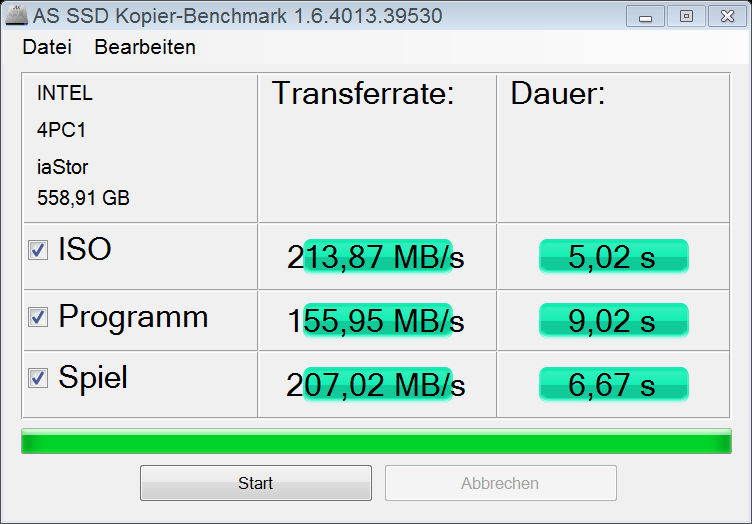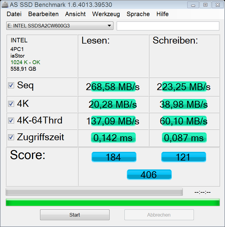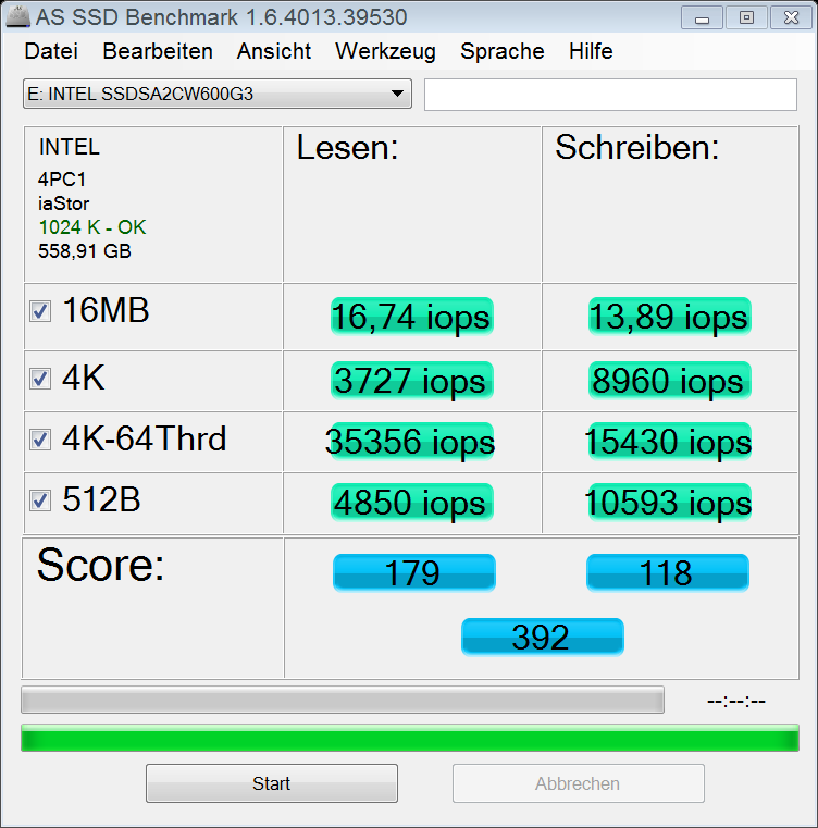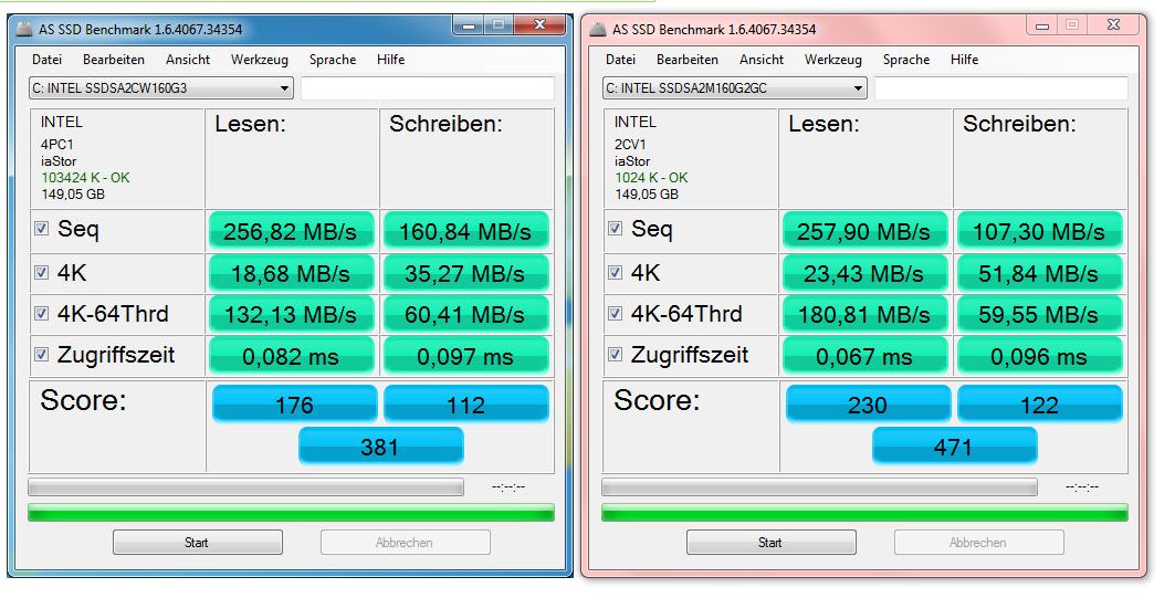 Trotzdem ist die SSD natürlich noch sehr schnell, weder bei der Bootzeit noch bei Programmstarts merkt man wirklich einen Unterschied (der wäre vllt. messbar aber sicher nicht fühlbar). Nur beim Boot sowie beim gefühlten "Clickgefühl" hat die 510 doch die Nase vorne, trotz ihrer vermeintlich schlechteren IOPS.