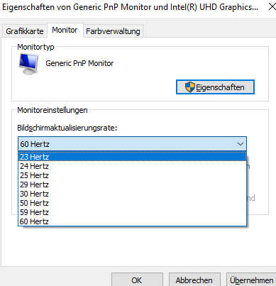 Intel UHD630 kann die Frequenz nicht auf 30 Herz stellen