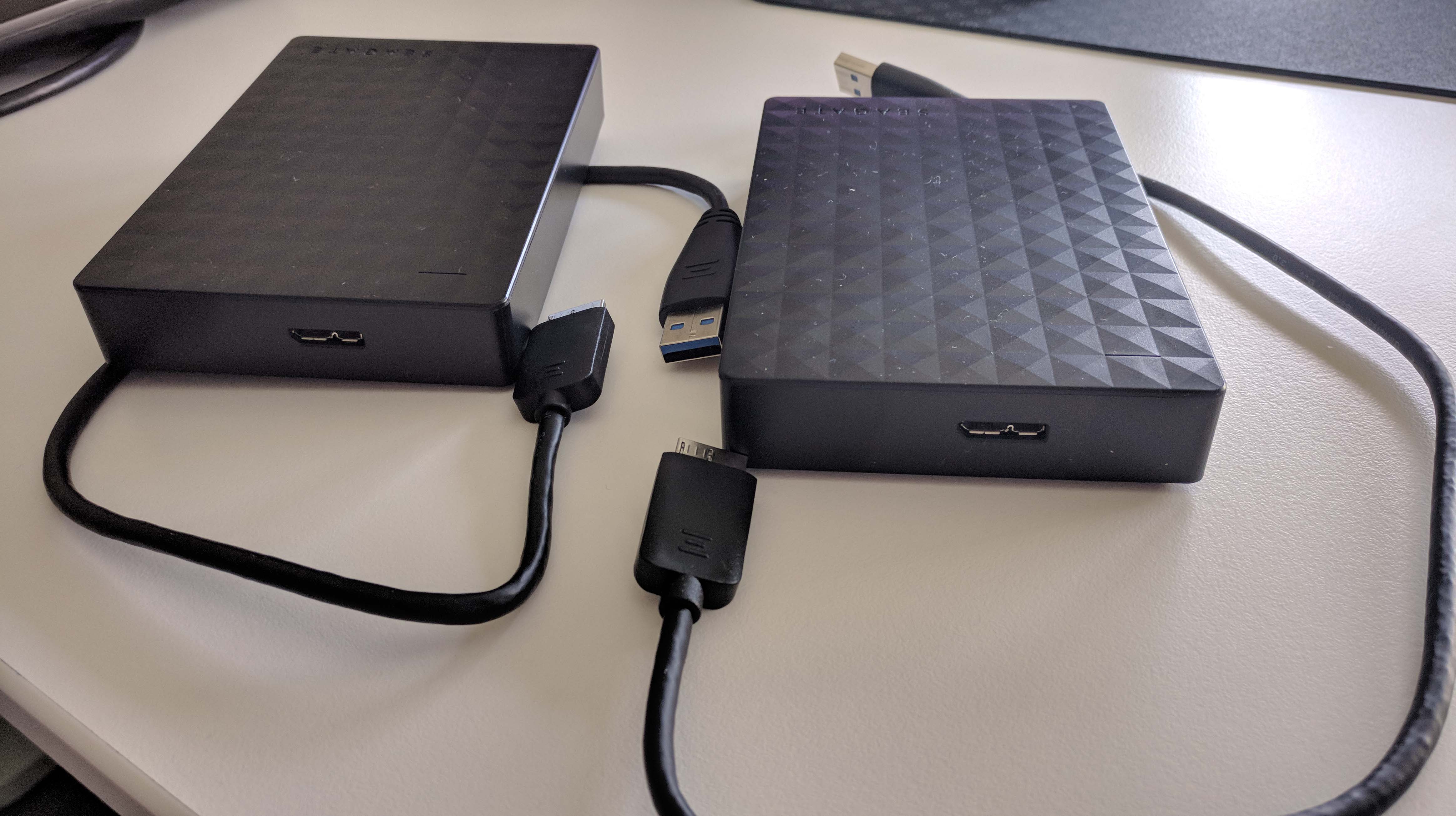Dann habe ich noch zwei Seagate Expansion + Portable 4TB Platten https://www.seagate.com/de/de/consumer/backup/expansion-portable/ und etwas ältere 500GB WD Platten.