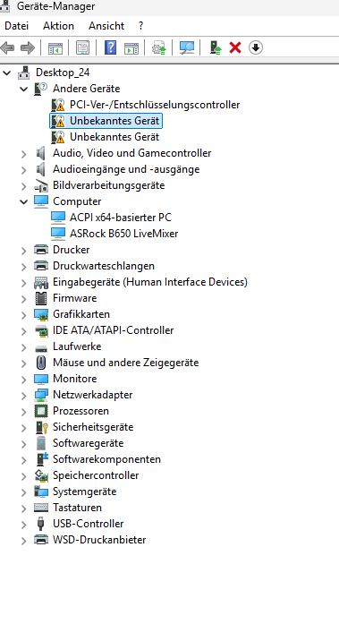 Nach Einbau der Intel Wi-Fi Karte wird diese offenbar von Betriebssystem nicht erkannt. Im Hardwaremanager habe ich insgesamt 3 unbekannte Geräte mit einem Ausrufezeichen (siehe Anhang).