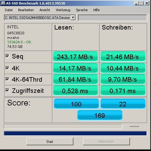 Die 700er SB kann man wohl nicht mit den 800er vergleichen, die neue bringen bessere Performance. Da aber bei SSDs als Systemplatte sowieso die Zugriffszeit den größeren Vorteil bringt als die Übertragungsraten, kann man auch damit leben.MarcBesken schrieb:Also Screenshots zu AS SSD, CDI und SSDLife wären trotzdem sehr hilfreich, damit auch andere AMD-Chipsatz-Nutzer die Werte vergleichen könnten.