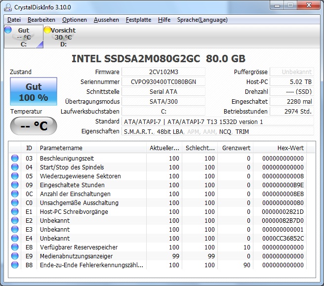 Was für eine Nullung? Meinst Du Wiper oder Secure Erease? Hier findest Du gleich im ersten Post die Erklärung dazu, mit TRIM aber unnötig, sofern die SSD nicht vorher ohne gelaufen ist. Außerdem hast Du eine Intel und keine mit Sandforce, die man dazu gleich komplett löschen muß und Intel hat eine Toolbox die eine Optimierung durchführen kann.dank1985 schrieb:Es wurde hier mal geschrieben das eine "Nulllung" der SSD wahre Wunder bewirken soll. Kann da jemand noch etwas dazu sagen? Ist das gefährlich für die SSD usw.