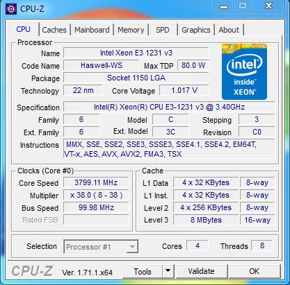 CPU: Intel XEON E3-1230v3@3,3Ghz