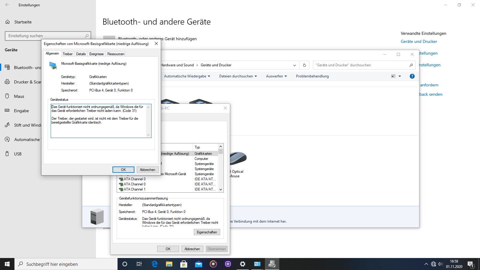 1 die Basis Grafikkarte haben nicht die benötigten Treiber und im Internet finde ich sie nicht