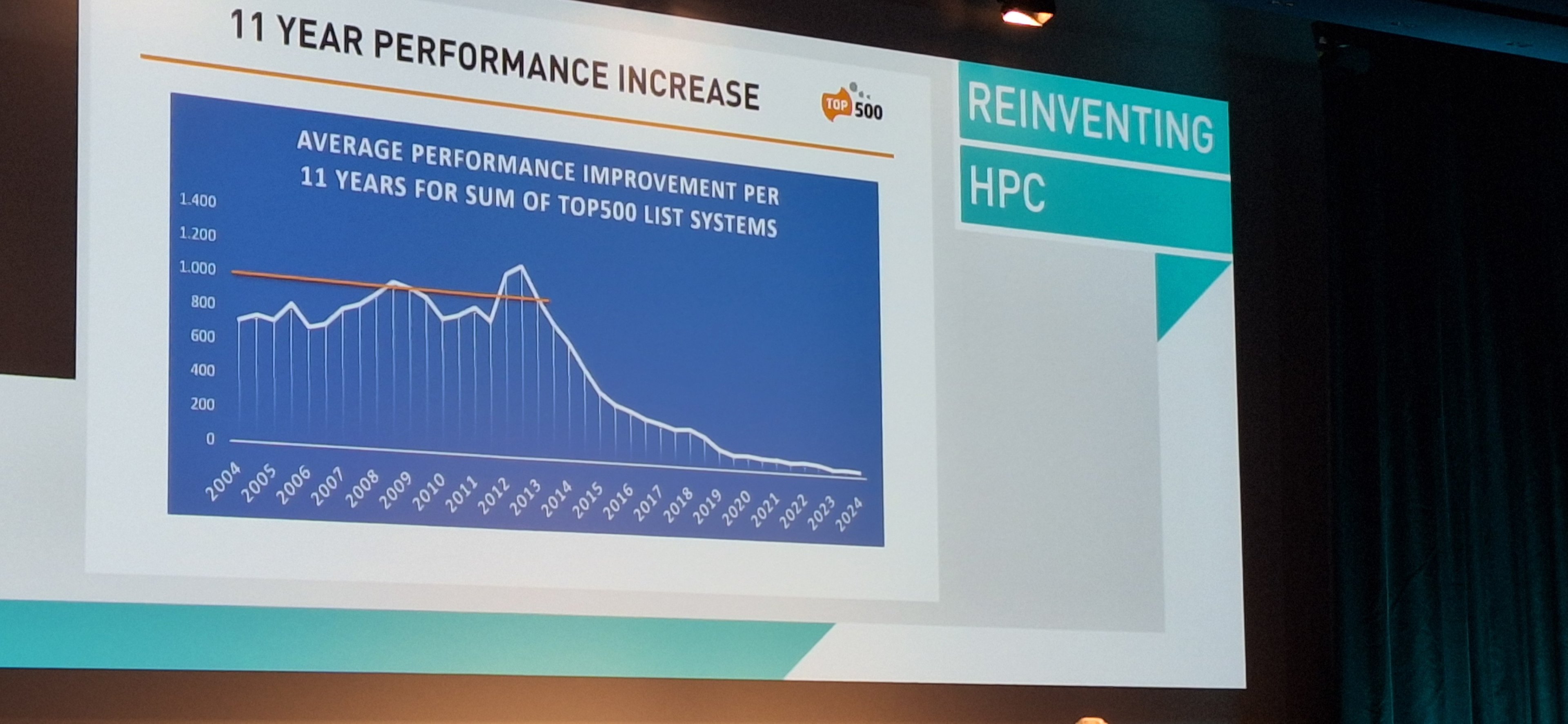 Was einem echt Sorgen machen sollte ist die Folie hier zur Performanceentwicklung. Das Ende naht wohl. Mehr Geld und mehr Strom funktioniert nur kurze Zeit.