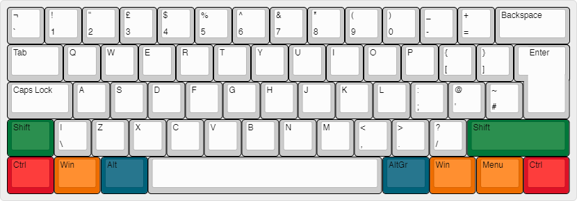 RGBO No.2 wäre mir am liebsten, also mit dem dunkleren Rot für Strg und Orange für die Win-Tasten.