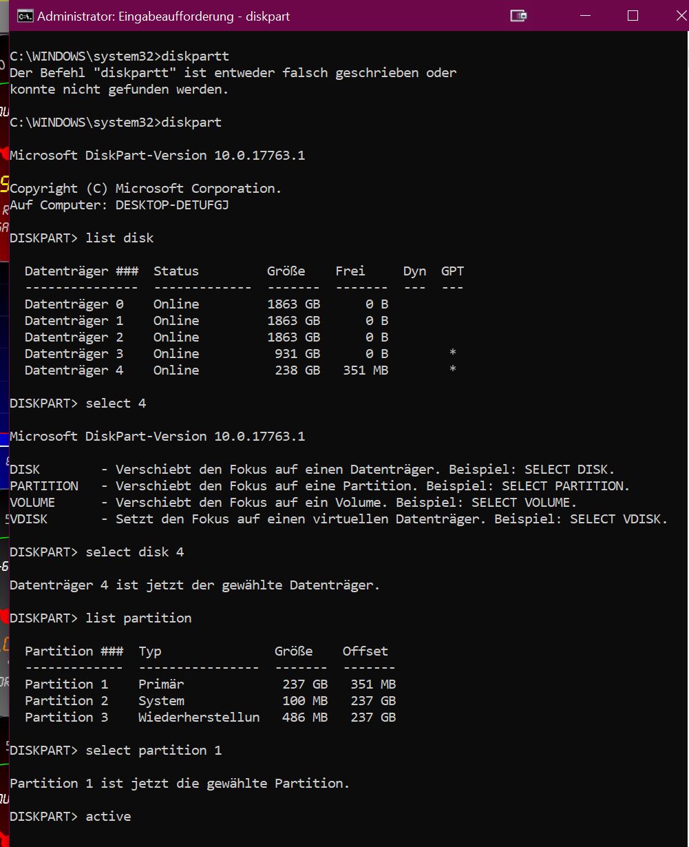 Habe an meinem Desktop durch versehentlicher Datenlöschung beim Einbau einer weiteren Platte ziemliche Probleme.