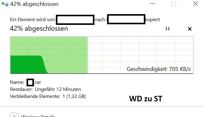 Wenn ich zwischen den zwei HDDs Daten kopiere, passiert immer folgendes:
